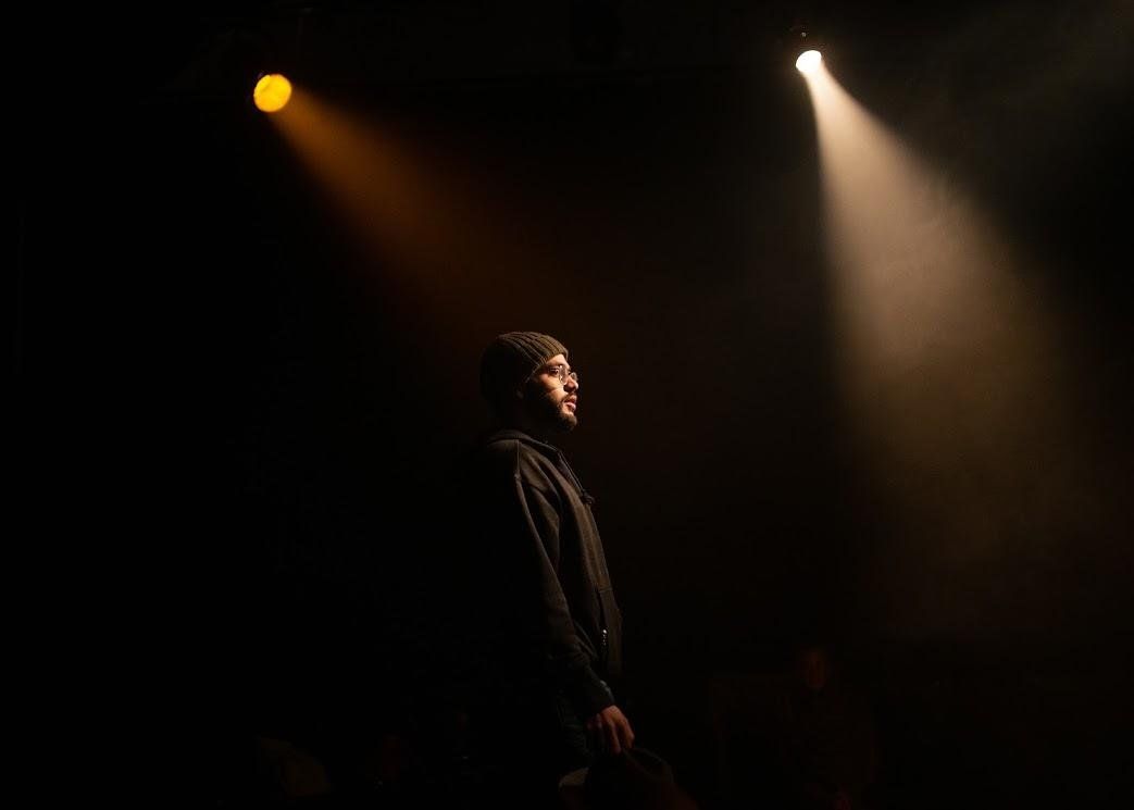 Niren (Kiroshan Naaido) recalls his father’s love of fishing, weathering the east-coast thunder storms to net his prodigal son. A scene from Lalela uLwandle at the Theatre Arts Admin Collective in Cape Town, 2019. Pic by Retha Ferguson