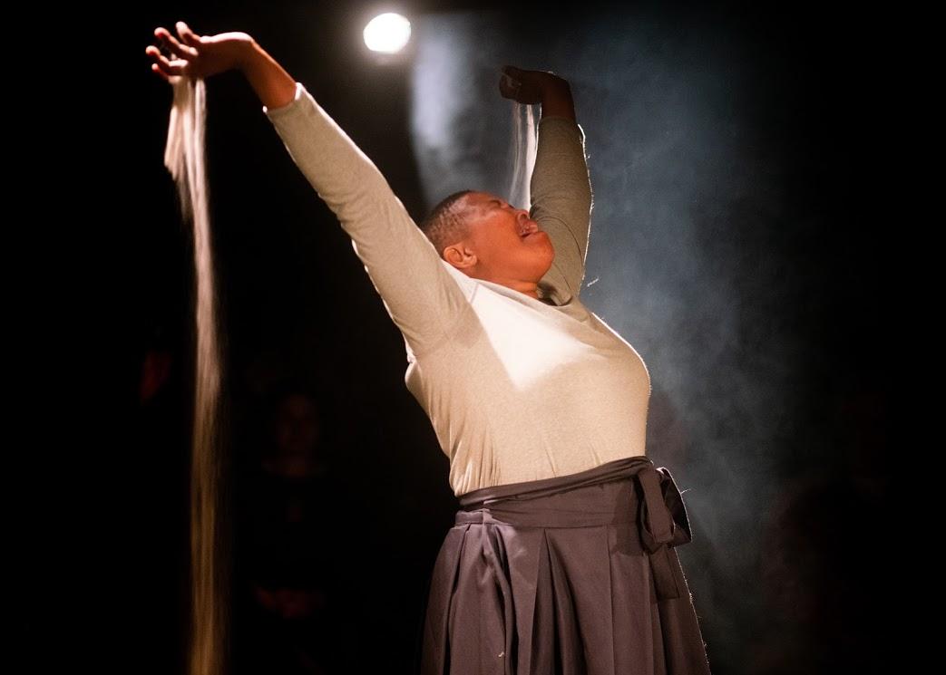 olwandle (Mpume Mthombeni) regales her audience with stories of oceanic wonder and subterranean awe during the Sodwana Bay performance of Lalela uLwandle, 2019. Pic by Casey Pratt
