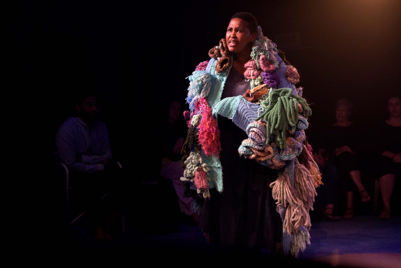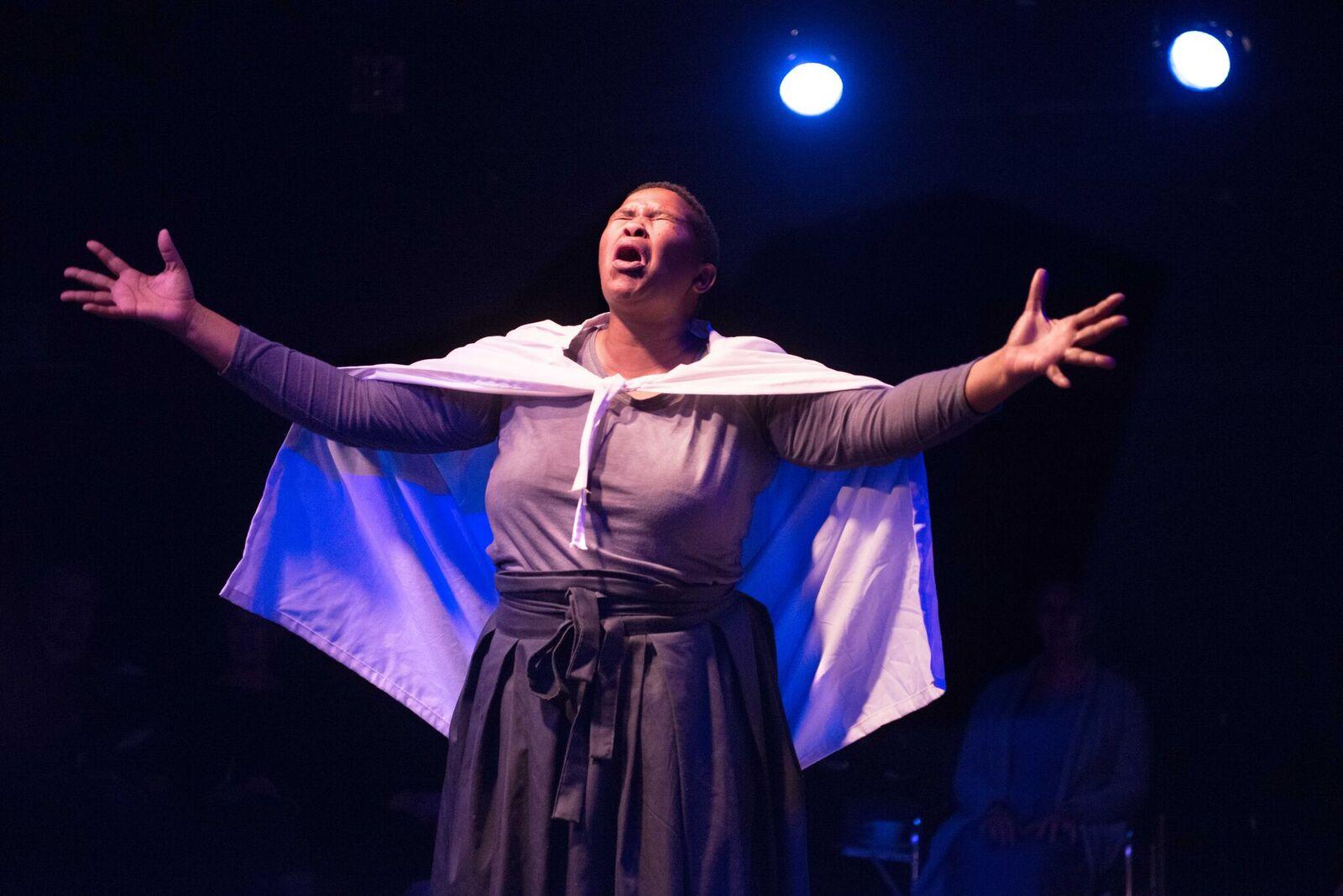 Elize Cawood as Faye in the first iteration of Lalela uLwandle at the Theatre Arts Admin Collective in Cape Town, 2019. Pic by Retha Ferguson.