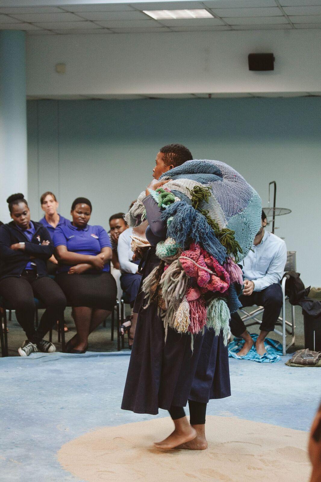 Mpume Mthombeni features as marine educator and healer Nolwandle with her magical coral blanket at the Ushaka Marine World performance for marine educators’ in 2019. Pic by Kelly Daniels.