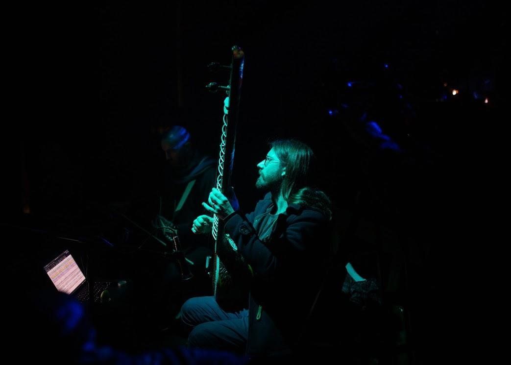 The magical Guy Buttery and his equally magical sitar accompanying the actors during a performance of Lalela uLwandle at the Theatre Arts Admin Collective in Cape Town 2019. The musicians Gary Thomas and Guy Buttery played instruments ranging from mbira, saw, guitar, sitar and percussion, working in close synergy with the performers to underscore the storytelling. Pic by Retha Ferguson.