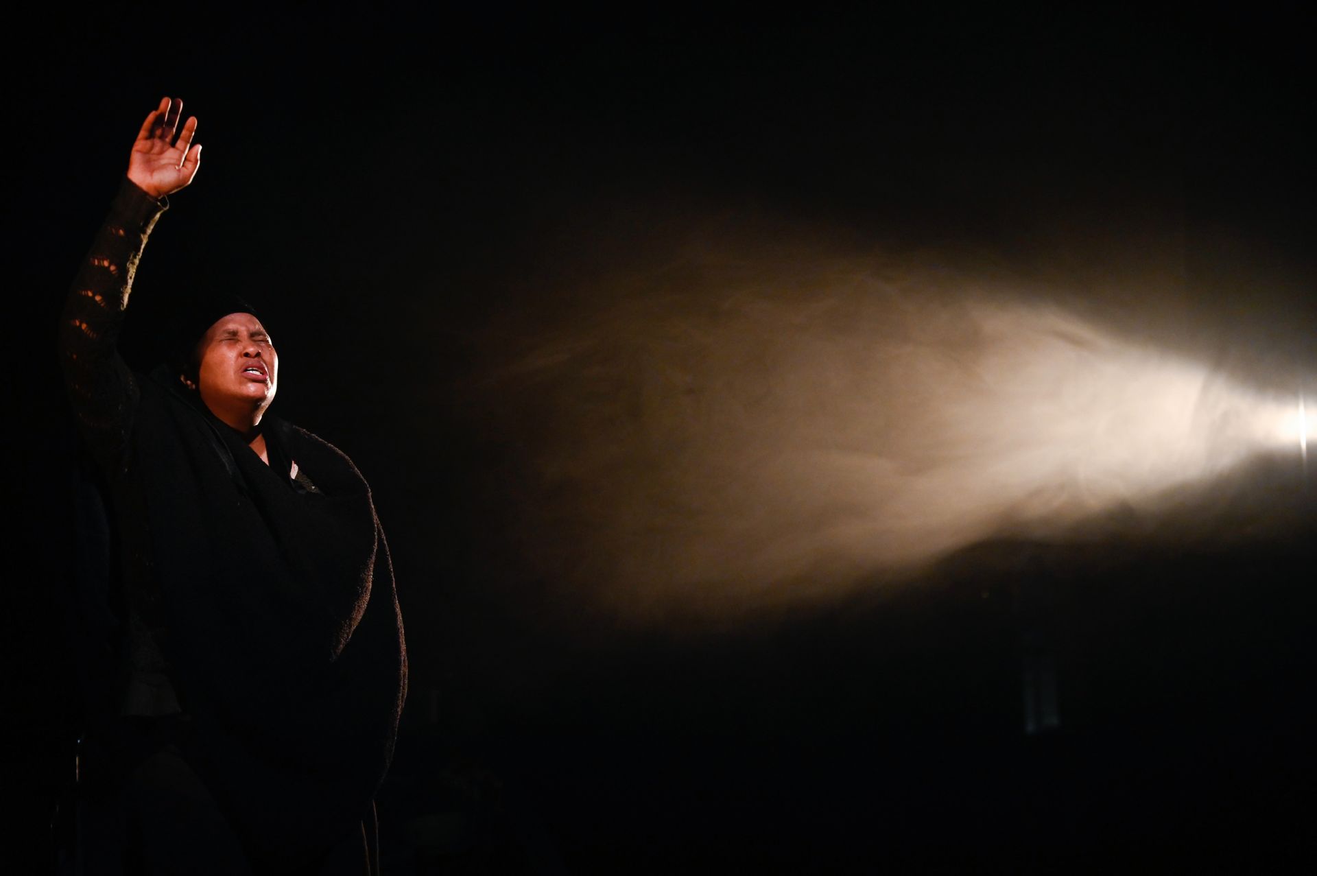 At the end of the dance, rain begins to fall, streaking down the window pane, its sound filling the theater. Zenzile cranes her head back to meet it, letting go of the umbrella…extending both arms, and