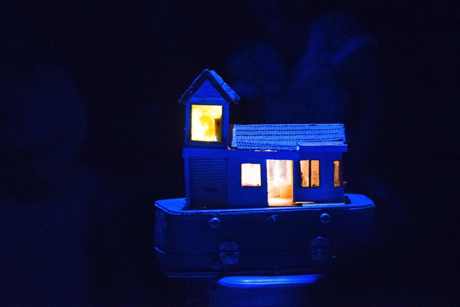 Ma Thwala sinks back to her seat proudly surveying her home. The lights fade, leaving only the glimmer of light shining through the windows and doorways of the miniature house.