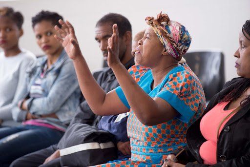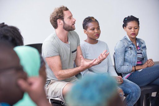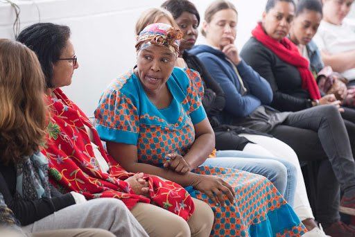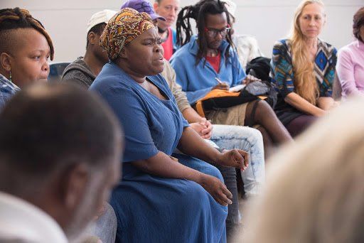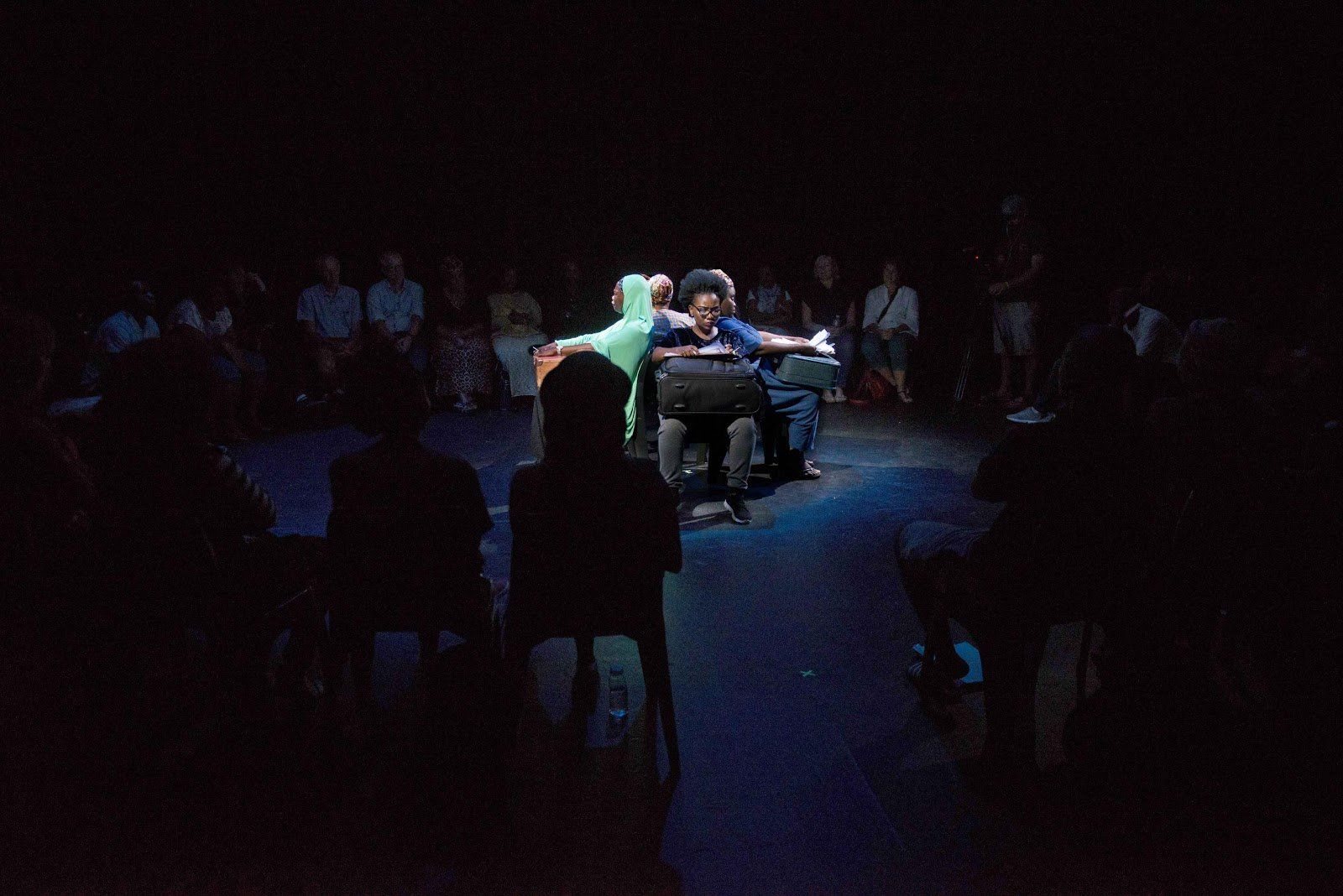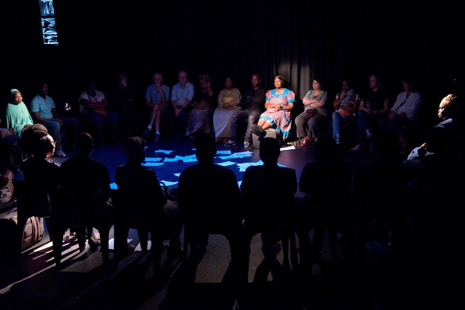 The Last Country theatre was performed in the round, with the actresses narrating their stories seated amongst the audience and occasionally moving into the center of the circle to illustrate certain pertinent moments. Performances were followed by a facilitated discussion on what it means to live together in the city of Durban. Pic by Val Adamson.