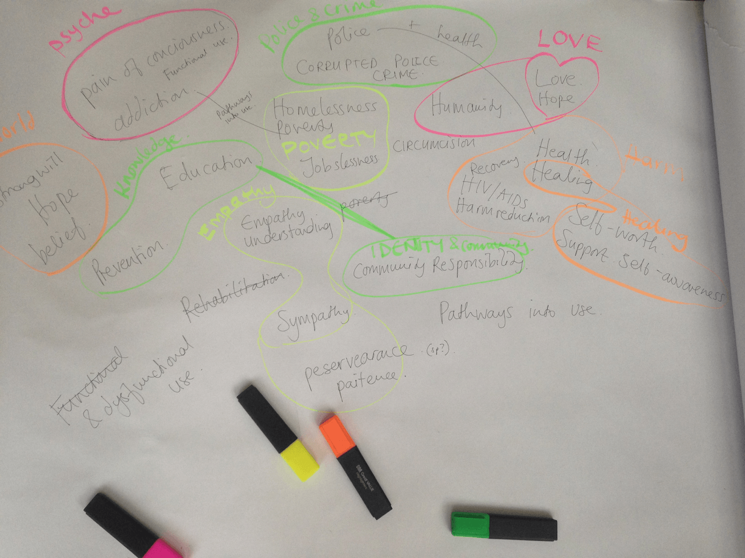 While the police in our interviews were aware of these problematic outcomes of punitive strategies, they battled to imagine alternative ways of responding to street level drug users. This was not the result of deficits in knowledge on the part of the police, but rather the result of the police being excluded from public health and solution-oriented networks. Police were reluctant first responders to whoonga addiction on the street. In a more robust harm reduction strategy towards drug use police are one (minor) tool in a broad range of social and health responses and interventions. The narratives performed in Ulwembu directly challenged existing responses and policy directives to street level drug addiction. The post-performance discussions created an invitation to collectively imagine alternative harm reduction frameworks that articulated positively with the recovery movement of drug users.